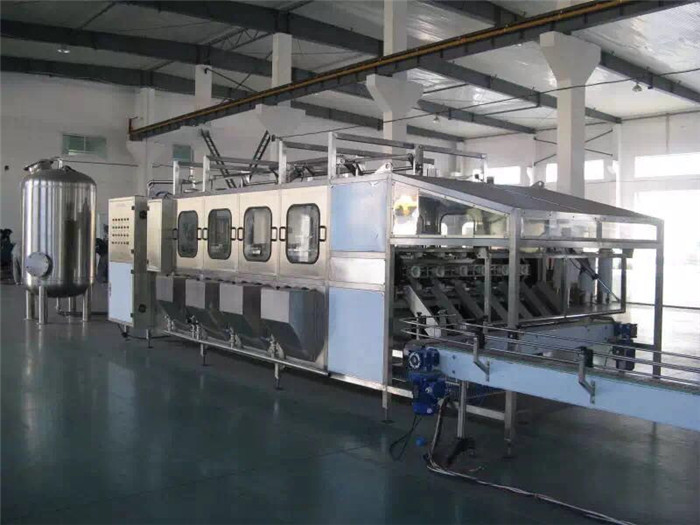 2、该设备适用5加仑瓶使用(也可适用3加仑瓶,但需提供样瓶),该设备集洗瓶、灌装、套盖、压盖和成品送出为一体。洗瓶机采用多道洗涤液喷射和消毒液喷射,达到洗涤、消毒的目的,消毒液可以循环使用。封口机可以自动封口,输送瓶盖过程口配有卫淋装置,以确保瓶盖无菌清洁。