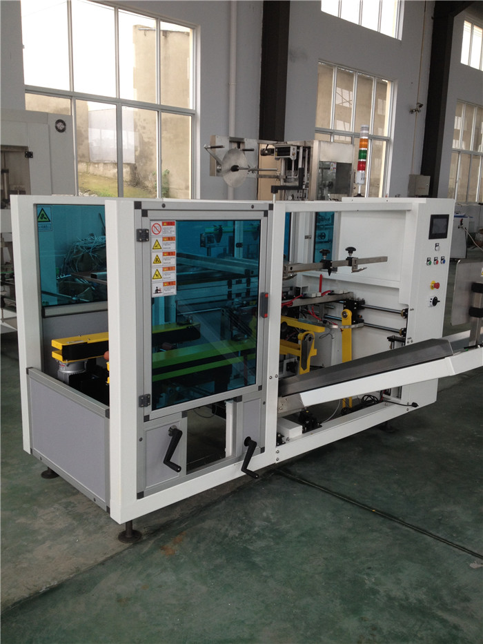 是大批量纸箱自动开箱、自动折合下盖、自动密封下底胶带的流水线设备,本机采用PLC+显示屏控制,大大方便操作、管理、减少生产人员的劳动强度,是自动化规模生产必不可少的设备。操作方便,降低包装成本。